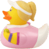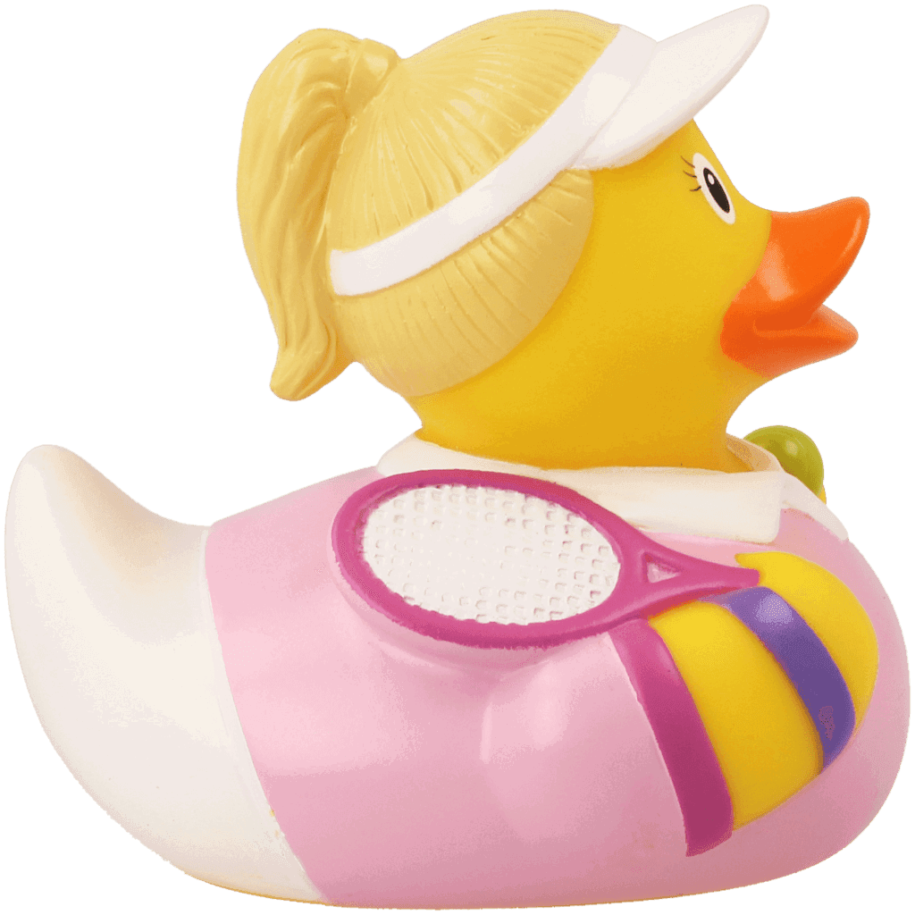 Helt siden barndommen har vår kvinnelige tennisspiller-badeand drømt om å nå toppen. Hun øver hver dag og mister aldri målet sitt av syne. Ingen kan stoppe henne. I sitt rosa antrekk og med rosa racket beseirer hun enhver badeand og kommer stadig nærmere Wimbledon. Denne badeanden vil være en flott gave til en venn som er en ivrig tennisspiller eller sportsentusiast, eller til en som ønsker å ha litt ekstra sporty moro i hverdagen. Et unikt og flott innslag i enhver badeand-samling!