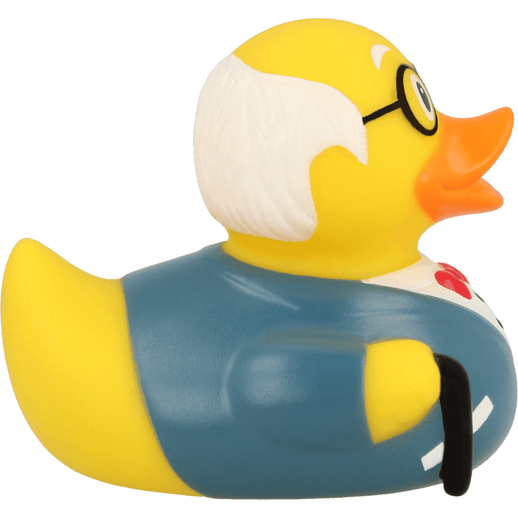 Bestefar-badeanden er en stilig og sofistikert liten fyr! Han har på seg en elegant jakke og en rød sløyfe i halsen. Med briller på nebbet og en stokk i vingen er det ingen tvil om at han er full av visdom og verdighet. Denne badeanden er en perfekt gave til en bestefar eller eldre slektning, eller til noen som elsker å samle på morsomme og unike badeender. Han vil elske å være en del av badeand-samlingen din!