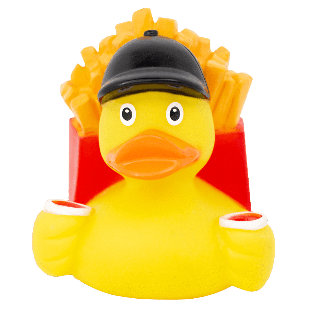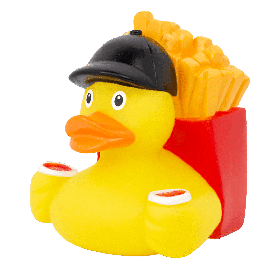 Denne badeanden har alltid med seg et velsmakende måltid! Med en stor porsjon pommes frites og drikke i hånden, vil han være en morsom og sulten følgesvenn uansett hvor du tar ham med. Fastfood-badeanden er en kul og annerledes gave til en venn eller familiemedlem som elsker mat og drikke i alle former og varianter – en ekte gourmand!