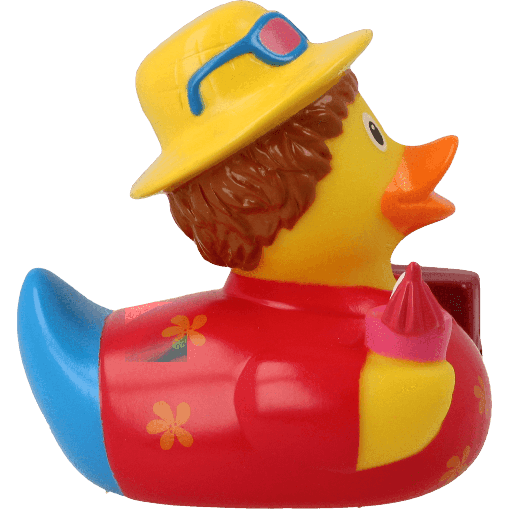 Ferie-badeanden er den perfekte følgesvennen for enhver reiselysten badeentusiast. Med solhatt, solbriller, koffert og paraplydrink er han klar for en avslappende og bekymringsløs ferie. Et unikt og morsomt tillegg til enhver badeand-samling, eller som en påminnelse om de gode minnene fra feriene dine. Denne badeanden er perfekt som gave til en venn som elsker å reise og vil gi en følelse av ferie og avslapning uansett hvor den befinner seg.