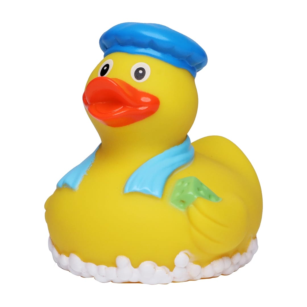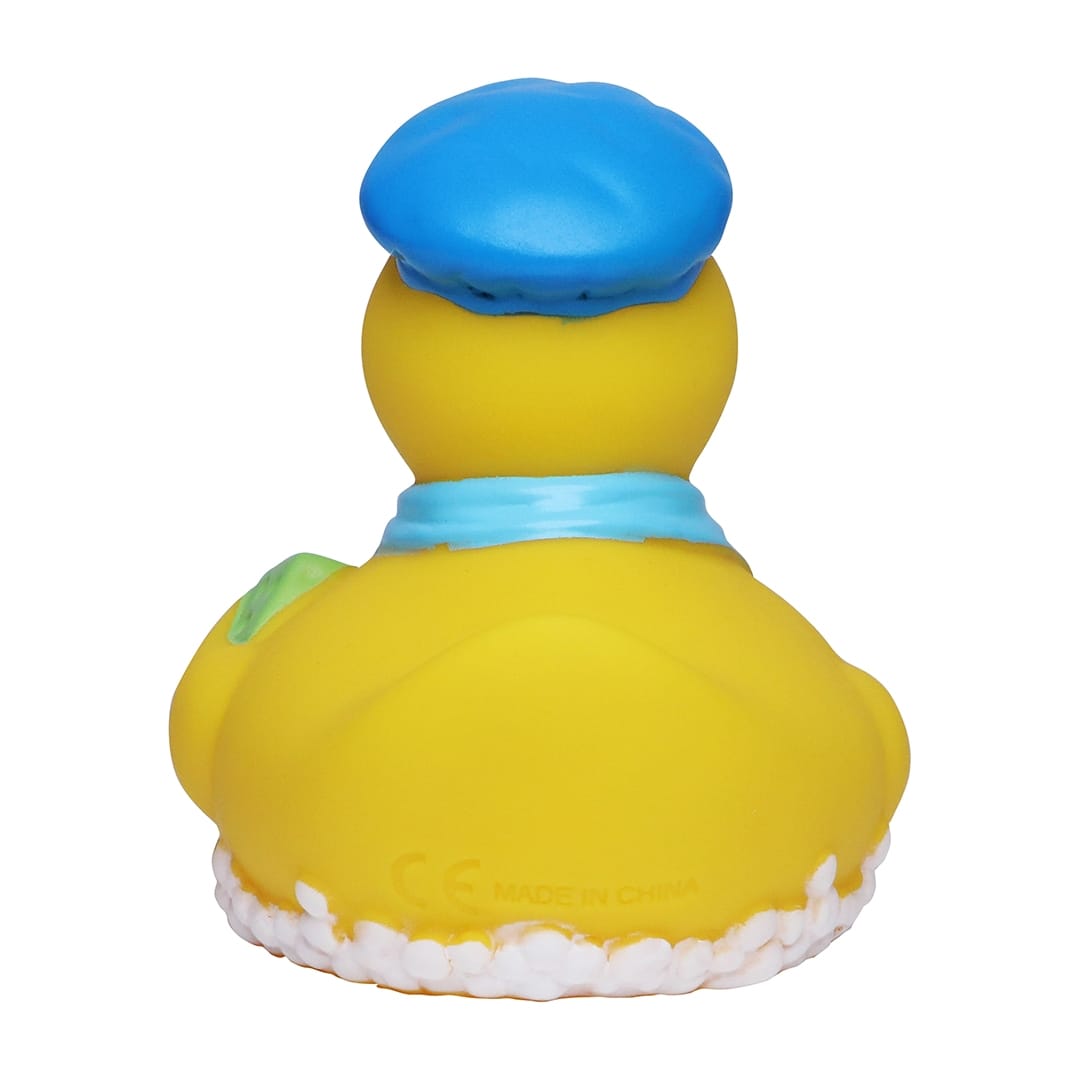 Denne glade badeanden tilhører den store Kvakky Duck-familien vår, som består av badeender i utallige varianter fra velkjente Schnabels®. Kvakky Duck-badeendene inngår i mange private badeand-samlinger, og er i tillegg spesielt godt egnet som reklameartikler innenfor en rekke bransjer som resieliv og turisme, hotell og restaurant, mote, bygg og anlegg, håndverk, transport, helse, barnehage og skole. Alle Kvakky Duck-badeender kan leveres med trykk i form av firmalogo, reklametekst eller lignende, og noen kan leveres med klistremerker som produseres i 4-fargers digitaltrykk og festes på egnet sted på badeanden. Ta kontakt med oss for mer informasjon.