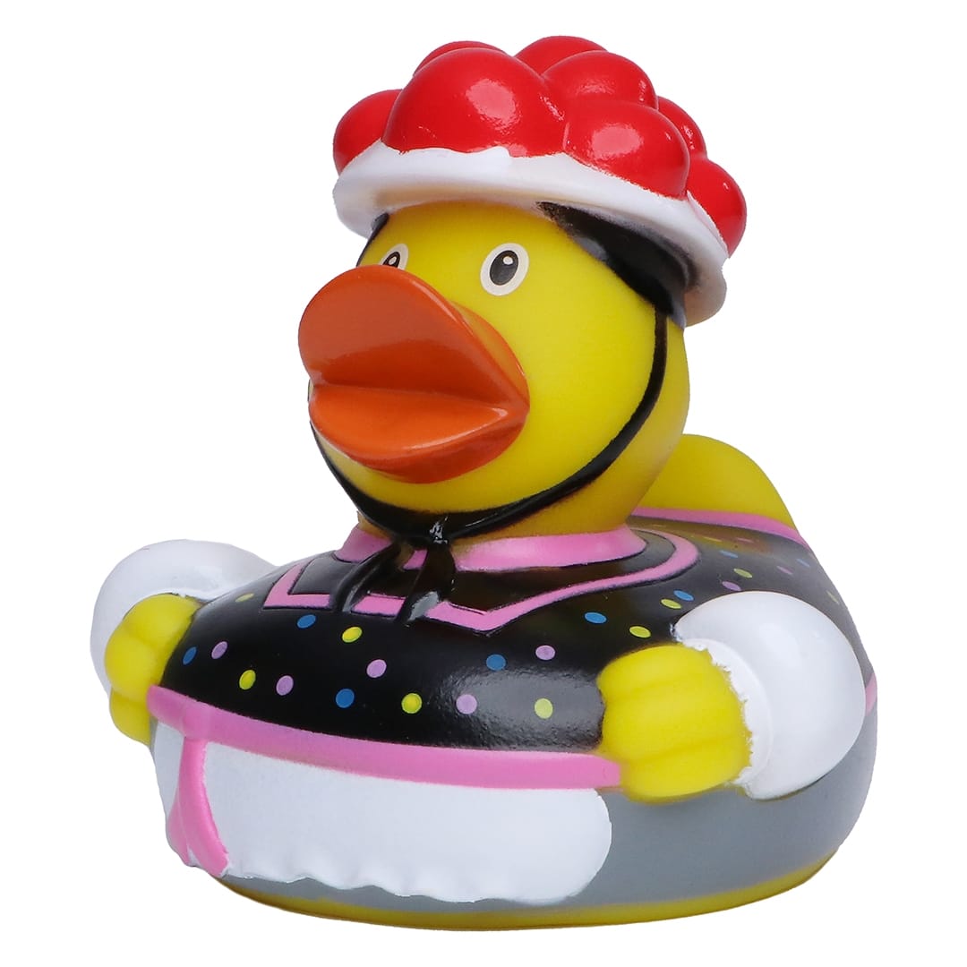 Denne glade badeanden tilhører den store Kvakky Duck-familien vår, som består av badeender i utallige varianter fra velkjente Schnabels®. Kvakky Duck-badeendene inngår i mange private badeand-samlinger, og er i tillegg spesielt godt egnet som reklameartikler innenfor en rekke bransjer som resieliv og turisme, hotell og restaurant, mote, bygg og anlegg, håndverk, transport, helse, barnehage og skole. Alle Kvakky Duck-badeender kan leveres med trykk i form av firmalogo, reklametekst eller lignende, og noen kan leveres med klistremerker som produseres i 4-fargers digitaltrykk og festes på egnet sted på badeanden. Ta kontakt med oss for mer informasjon.