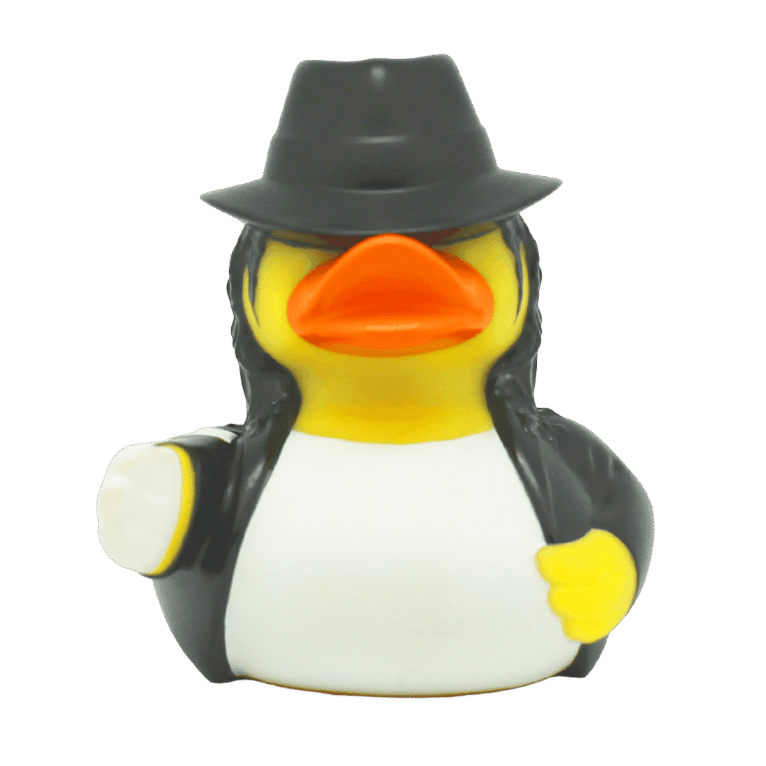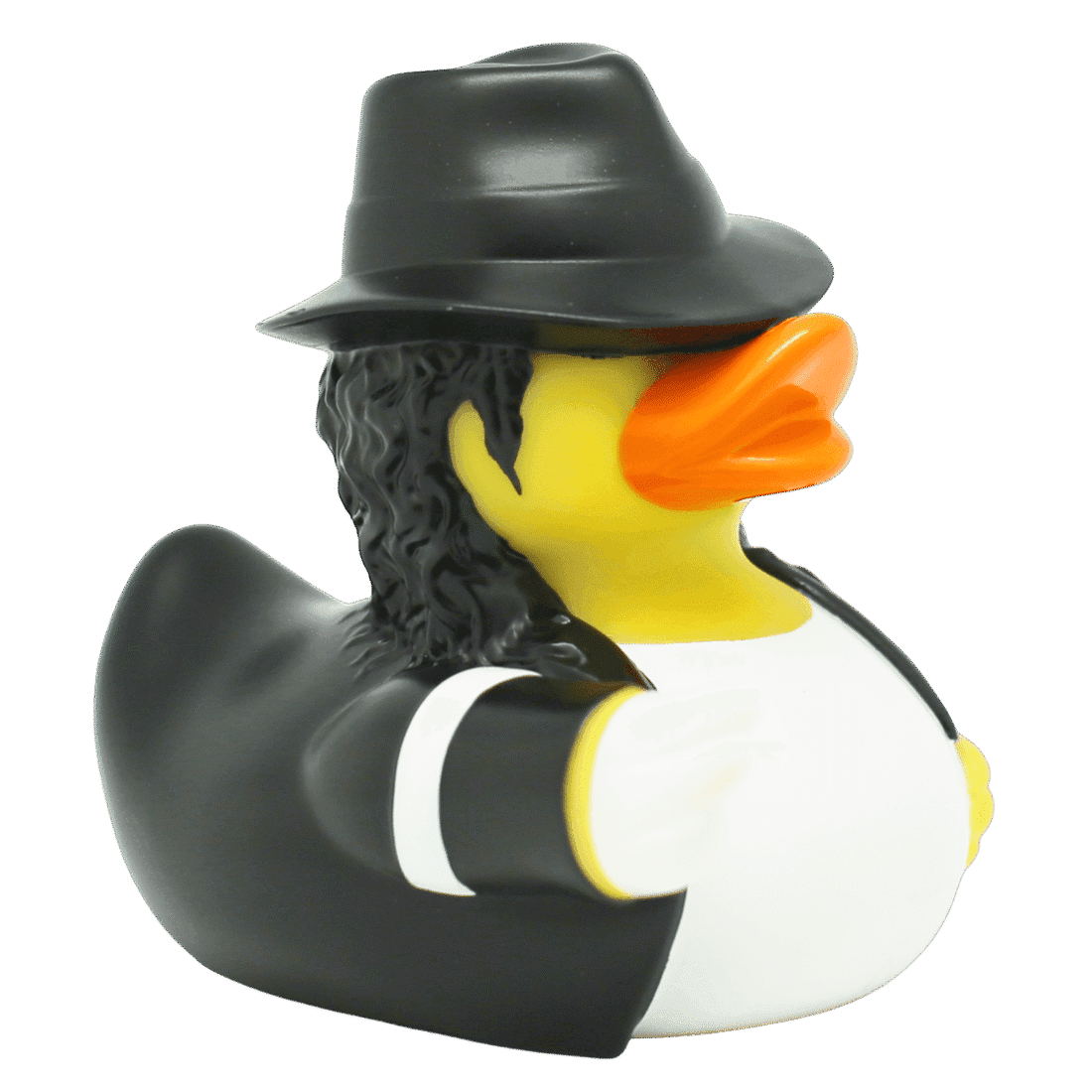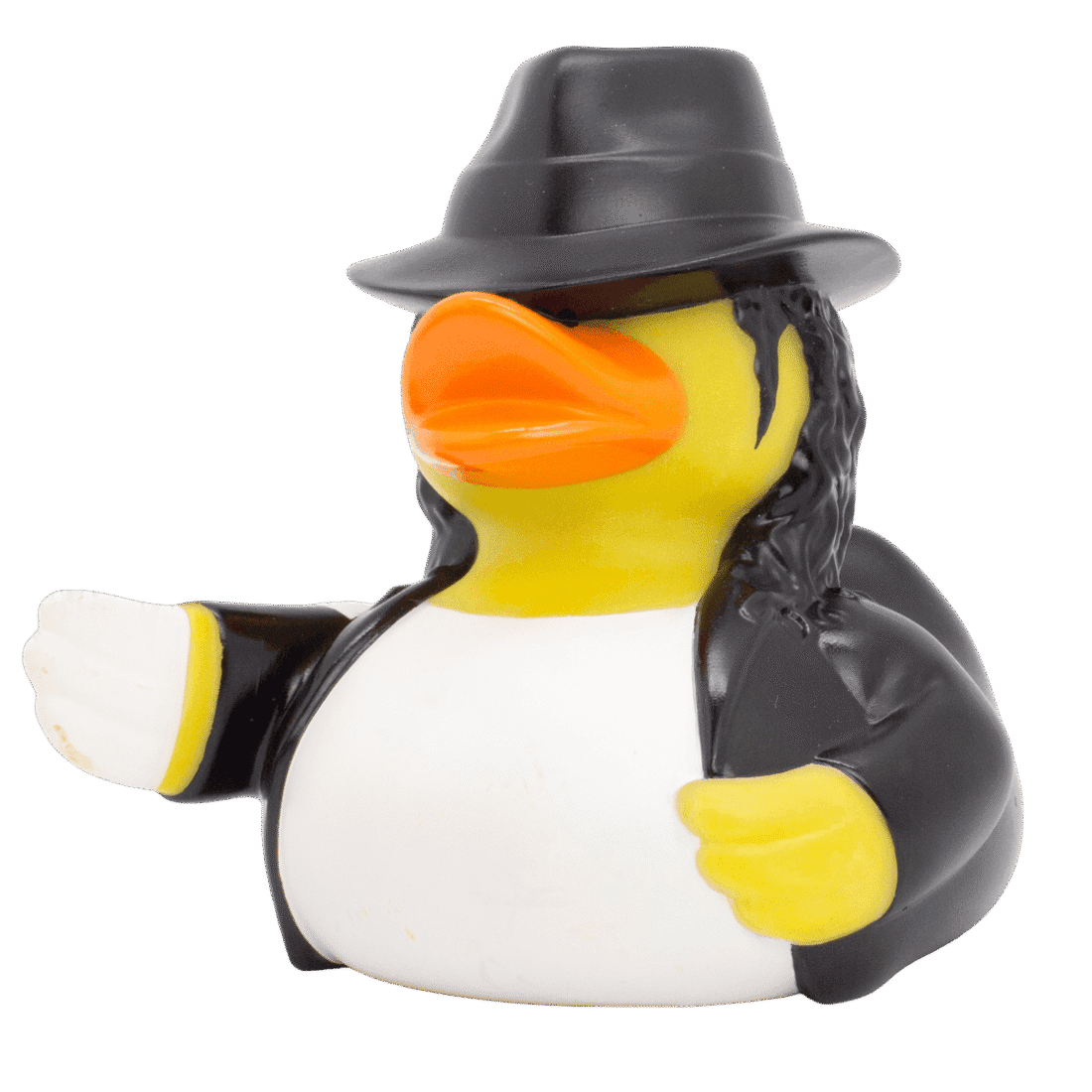 Er du klar til å moonwalke inn i samlingen din? Møt Mikael Kvakkson-badeanden – den ultimate superstjernen i andeverdenen! Med sitt ikoniske antrekk og stilige hatt, er denne anda klar til å bringe rytme og sjarm til ethvert rom. Kvakkson er kjent for sine glatte moves og fengende kvakk, og han gjør seg like godt som et artig blikkfang på hylla som en lekekamerat i badekaret. Uansett hvor han plasseres, vil Mikael Kvakkson sørge for at humøret løftes, og at enhver andesamling får et hint av superstjernemagi. Denne anda er perfekt for deg som elsker en morsom og unik vri…
