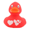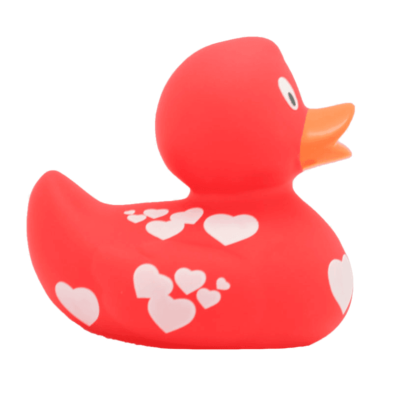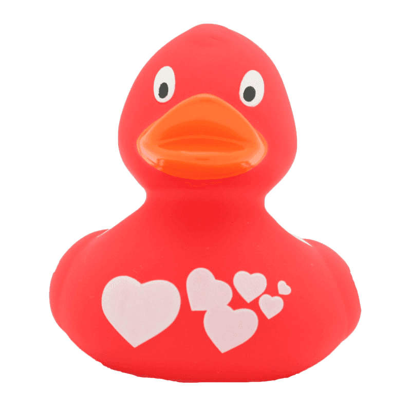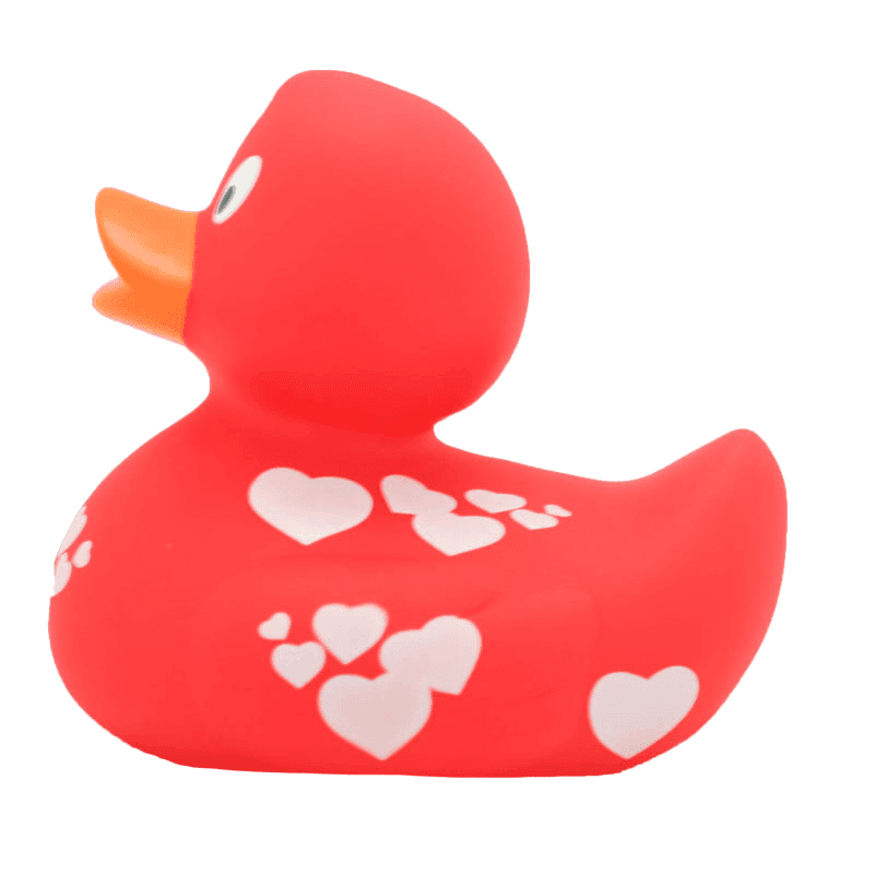 En nydelig badeand som skaper en romantisk atmosfære. Med sitt søte utseende og hjerter i hvitt på de røde fjærene er hun et morsomt og romantisk tillegg til enhver badeand-samling. En flott gave til en spesiell person i livet ditt, eller som en påminnelse om kjærligheten og romantikken som finnes i hverdagen.