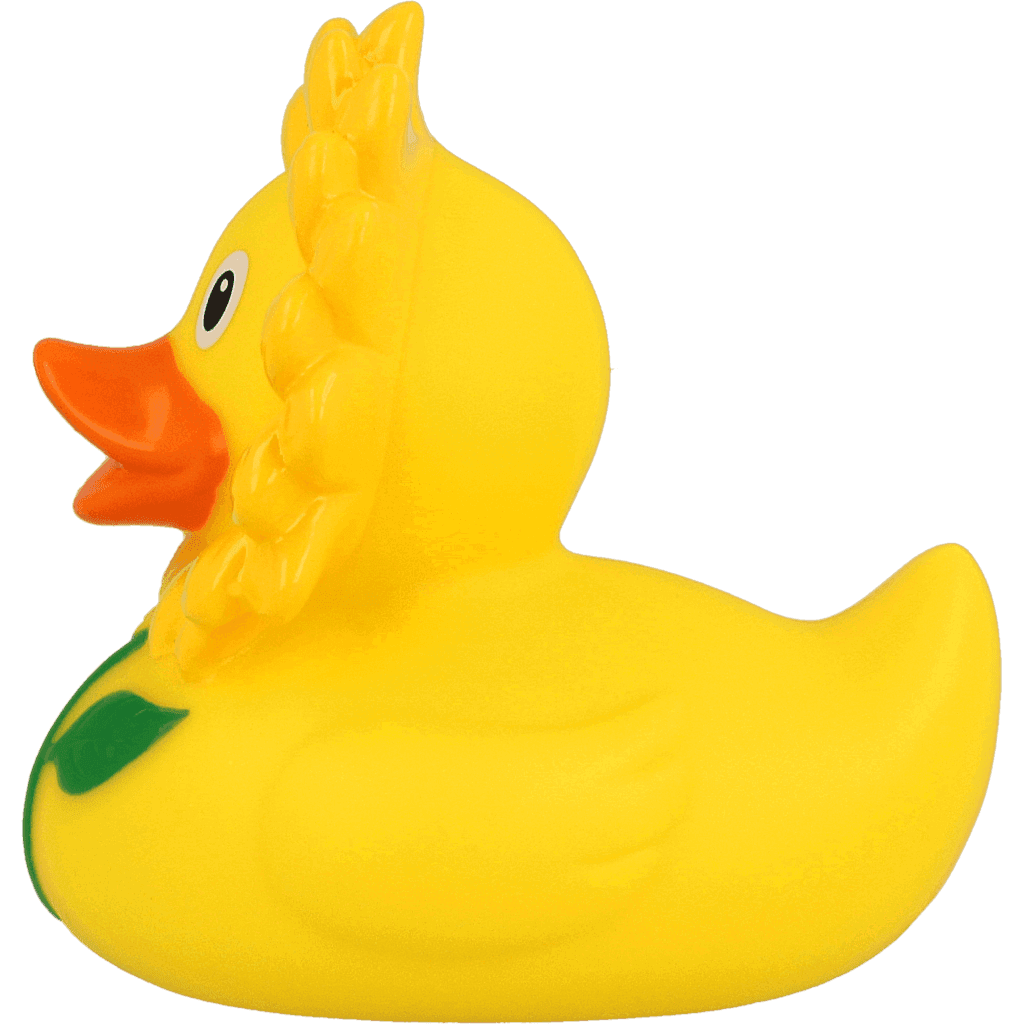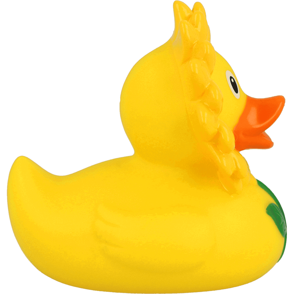 Solsikke-badeanden er en strålende og fargerik badeleke som får deg til å smile. Med sin gule kropp og en krans av solsikkeblader rundt hodet, ser hun ut som selve solsikken. Stilken på brystet gir en fin detalj og gir et inntrykk av at badeanden er forankret i jorden, klar til å spre glede i vannet. Med denne badeanden vil du definitivt få sommerfølelsen uansett vær! Gi den i gave til en person som elsker solsikker eller blomster generelt. Den kan også være en fin gave til noen som trenger litt oppmuntring eller lys i hverdagen.