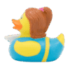 Surf til suksess med denne kule surferjente-badeanden! Hun leter nå etter en surfepartner som deler lidenskapen hennes, og er klar for å utforske bølgene og nyte solen på stranden. Perfekt for alle som elsker strandlivet og surfekulturen og vil ha litt ekstra moro. Ta henne med deg på neste strandtur eller bassengfest!