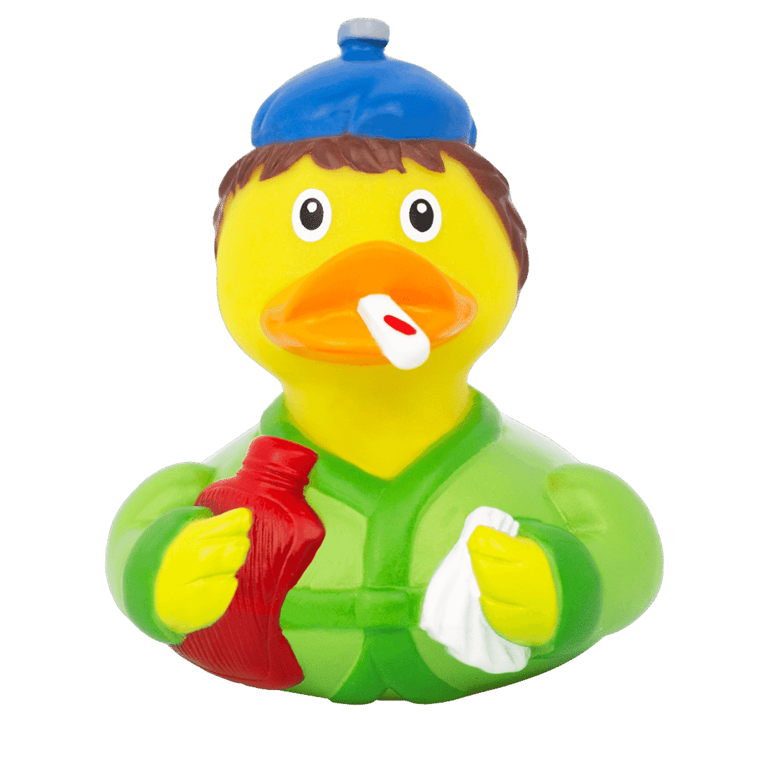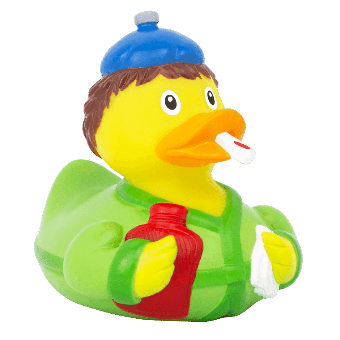 Denne badeanden vil være din følgesvenn i dårlige dager og sykdomstider. Den lille badeanden forstår, og viser, at noen ganger trenger man bare litt omsorg og medlidenhet. Med termometer i nebbet, ispose på hodet, varmeflaske i den ene vingen og lommetørkle i den andre minner denne unike badeanden oss om å ta vare på oss selv og våre kjære i tider med sykdom. Men den representerer også den gode følelsen av å gi omsorg til andre når de trenger det som mest. Den syke badeanden bringer med seg både smil og trøst, uansett hvor den befinner seg. Den syke badeanden…