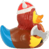 Denne tøffe viking-badeanden er den perfekte følgesvennen for enhver badeentusiast som elsker historie og eventyr. Med hjelm, skjold og øks i hendene, er han klar til å erobre både badekaret og resten av verden. Enten du vil ha ham som en morsom dekorasjon eller som en lekekamerat, vil denne badeanden være en favoritt blant viking- og badeentusiaster. Perfekt som gave til en venn som elsker vikinghistorie eller som en påminnelse om den modige ånden til vikingene. Et unikt og tøft innslag i enhver badeand-samling!